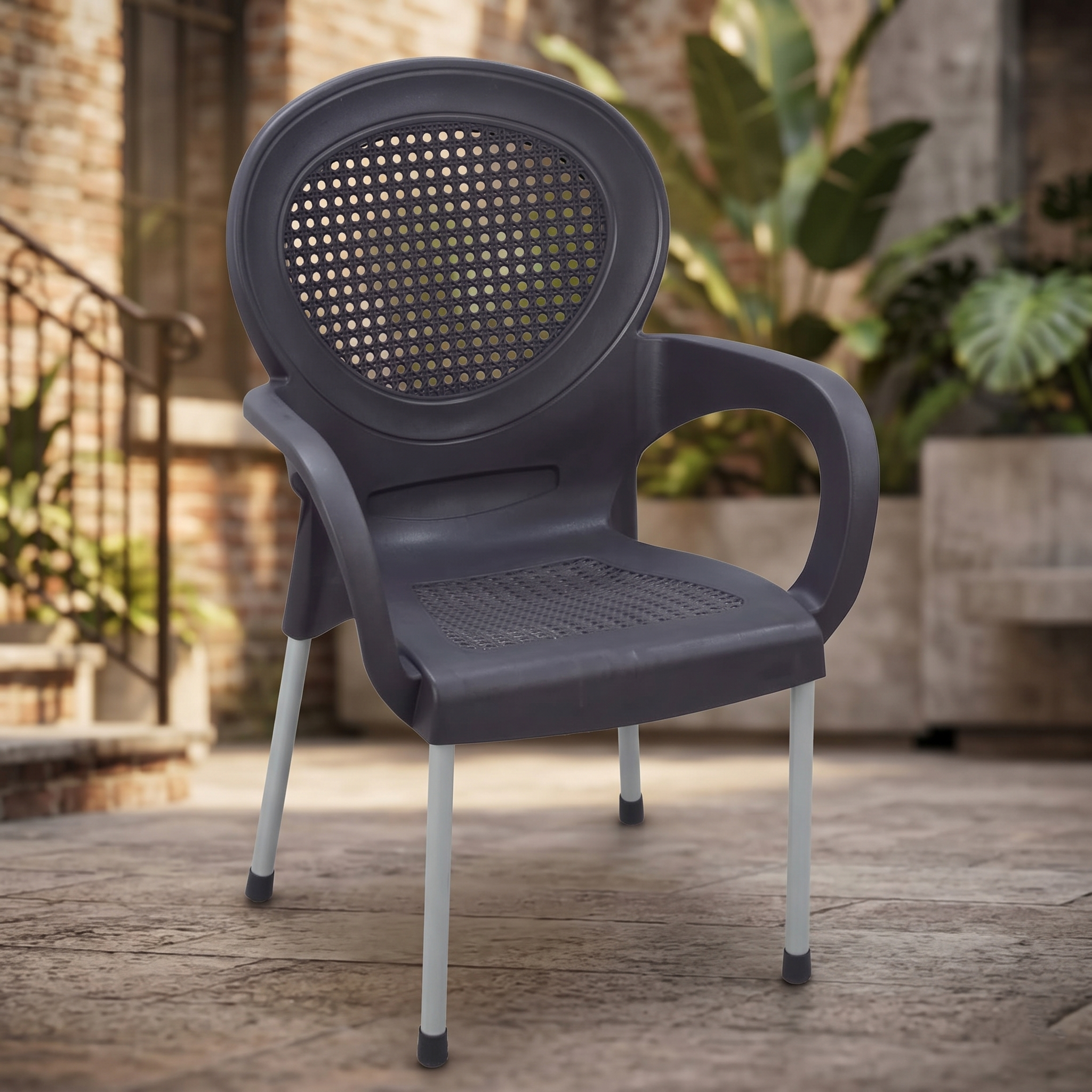 Boss BP-678 Steel Plastic Carmen Rattan Chair With Arms