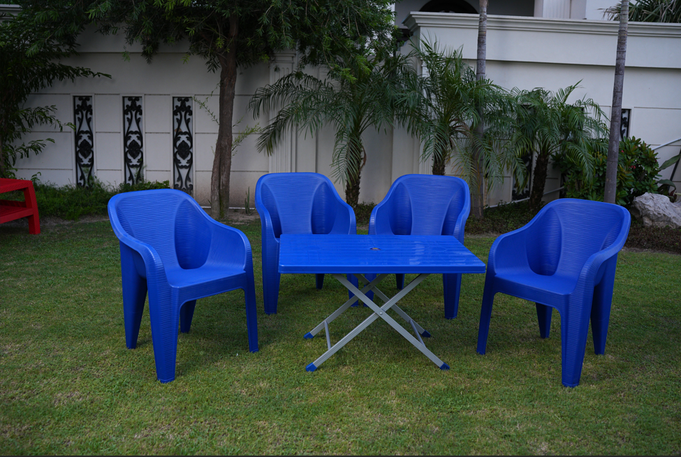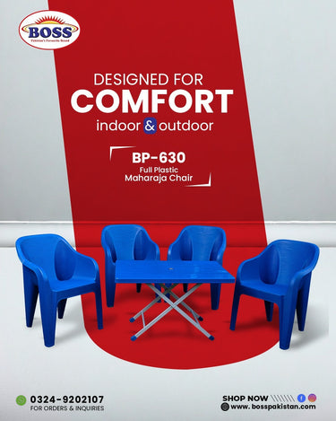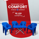 Elevate your seating experience with the Maharaja Chair Set paired with the BP-214-s Steel Plastic Folding Table. Crafted from durable materials, this set offers long-lasting strength and versatility. Its range of colors complements any indoor or outdoor setting, making it ideal for patios, gardens, and lawns. Designed for both style and comfort, this set transforms your space into an elegant and inviting area for relaxation or social gatherings