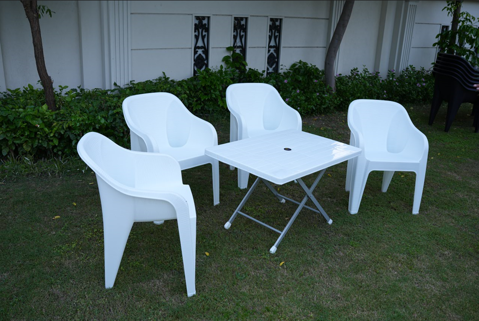 Elevate your seating experience with the Maharaja Chair Set paired with the BP-214-s Steel Plastic Folding Table. Crafted from durable materials, this set offers long-lasting strength and versatility. Its range of colors complements any indoor or outdoor setting, making it ideal for patios, gardens, and lawns. Designed for both style and comfort, this set transforms your space into an elegant and inviting area for relaxation or social gatherings
