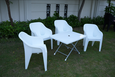 Maharaja Chair Set with BP-214-s Steel Plastic Folding Table (White Color)